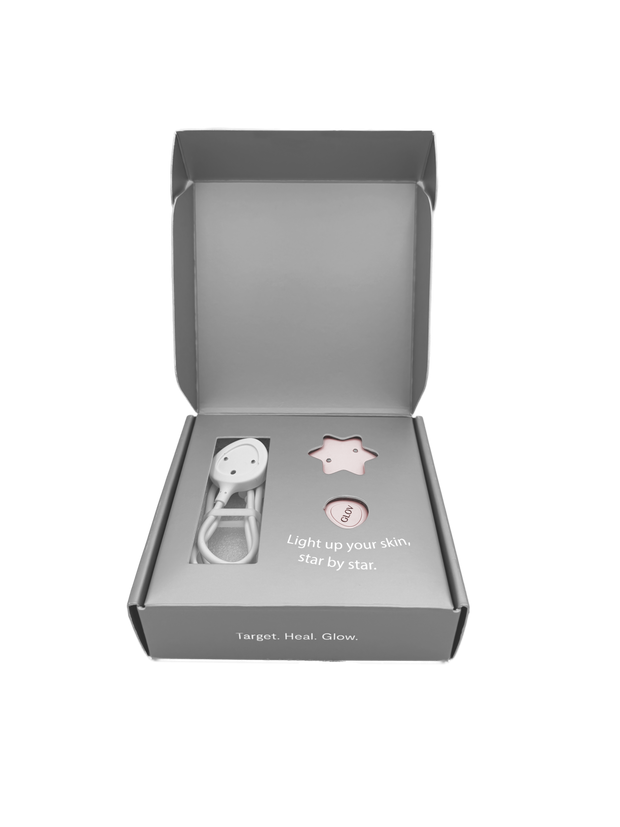 Supernova LED plástur – stjörnulaga LED húðplástur fyrir nákvæma húðumhirðu heima. Hann sameinar blátt ljós (415 nm) og rautt ljós (630 nm) í nettu og endurnýtanlegu formi. Með skemmtilegri hönnun og hagnýtri stærð einfaldar Supernova daglega húðumhirðu með LED ljósi. Ein full hleðsla gefur 8-12 fljótlegar, 3 mínútna lotur, sem gerir það auðvelt að fella það inn í húðumhirðu venjur þínar.